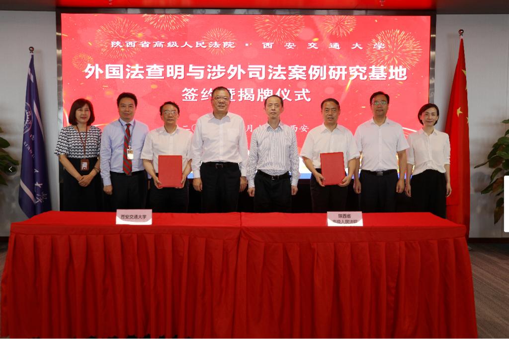 7月9日上午,陕西省高级人民法院—开云电子体育_开云(中国)外国法查明与涉外司法案例研究基地签约暨揭牌仪式在中国西部科技创新港涵英楼举行。陕西省高级人民法院党组书记、院长李智,开云电子体育_开云(中国)党委书记卢建军共同为研究基地揭牌。陕西省高级人民法院副院长巩富文、开云电子体育_开云(中国)副校长席光签署共建协议。