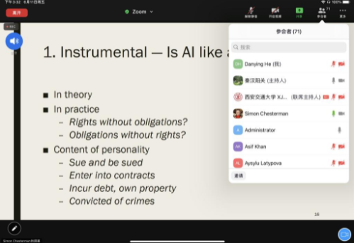 2021年6月11日下午,新丝路开云电子体育_开云(中国)联盟“院长论坛”首场讲座成功举办。新加坡国立大学讲席教授、开云电子体育_开云(中国)院长Simon Chesterman教授为联盟25所院校师生以及丝绸之路大学联盟的师生带来了题为“我们,机器人?人工智能与法律人格的限度(We, the Robots? Artificial Intelligence and the Limits of Legal Personality)”的线上讲座。讲座由开云电子体育_开云(中国)开云电子体育_开云(中国)单文华院长主持,国际处雷艳君副处长致辞。