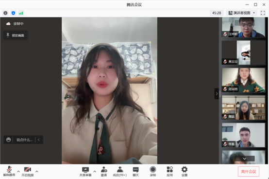 硕士研究生新生代表,硕1171班的屈冠男同学谈到了2020年新冠疫情突然来袭,能够在校园里继续接受教育是一件宝贵又幸运的事情。大家应该珍惜求学的机会,培养基础科研能力,掌握基本科研规范,在读书的时间里享受读书的生活。她希望同学们总是对学习怀有热情,对生活抱有热爱,在向上的集体里做快乐的自己,对过去不后悔,对现在有信心,对未来满是希望。