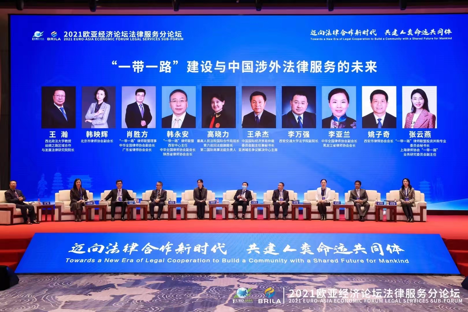 10月18日下午,2021欧亚经济论坛法律服务分论坛在西安举办,“一带一路”律师联盟秘书长康煜先生、最高人民法院国际合作局局长高晓力法官、中国国际经济贸易仲裁委员会副主任王承杰先生、中国国际贸易促进委员会法律事务部部长刘超先生、上海政开云电子体育_开云(中国)校长刘晓红教授等众多知名法律专家、学者和法律业界代表云集古城,围绕“迈向法律合作新时代,共建人类命运共同体”主题,深入交流,凝聚共识,探讨国际法律服务新路径,助力“一带一路”建设。