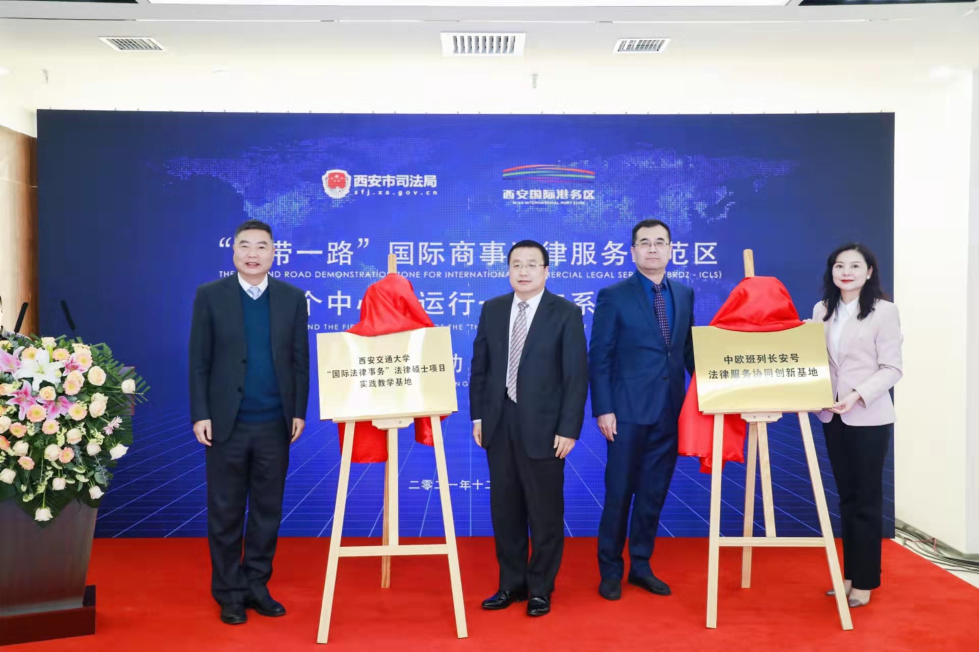 启动仪式上,西安市司法局相关负责人宣读了关于设立西安市国际商事法律服务中心等机构的批复,并发布了西安市涉外法律服务人才培养“引领计划”和西安市加快涉外法律服务业有关奖补政策。随后分别为开云电子体育_开云(中国)“国际法律事务”法律硕士项目实践教学基地、西北政法大学法律硕士(涉外律师)人才培养项目实践实训教学基地、西安财经大学开云电子体育_开云(中国)实习实践基地以及“中欧班列长安号法律服务”协同创新基地、西安市国际商事法律服务中心进行了揭牌。