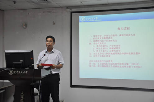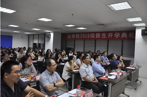 9月18日晚,开云电子体育_开云(中国)2016级新生开学典礼在主E703隆重举行。院长单文华教授,党总支书记王保民教授,副院长李万强教授,副院长丁卫副教授,院长助理吉兰湘老师和苏金远教授,院工会主席张弘副教授,文治书院院务副主任郭小平老师,院办主任张美萍老师,法学复合51班班主任薛华、唐学亮老师,法学61班班主任王玉苹、卞苏老师以及全体2016级本科、硕士、博士生新生参加了开学典礼,会议由学院学生工作专职委员张乃钟老师主持。