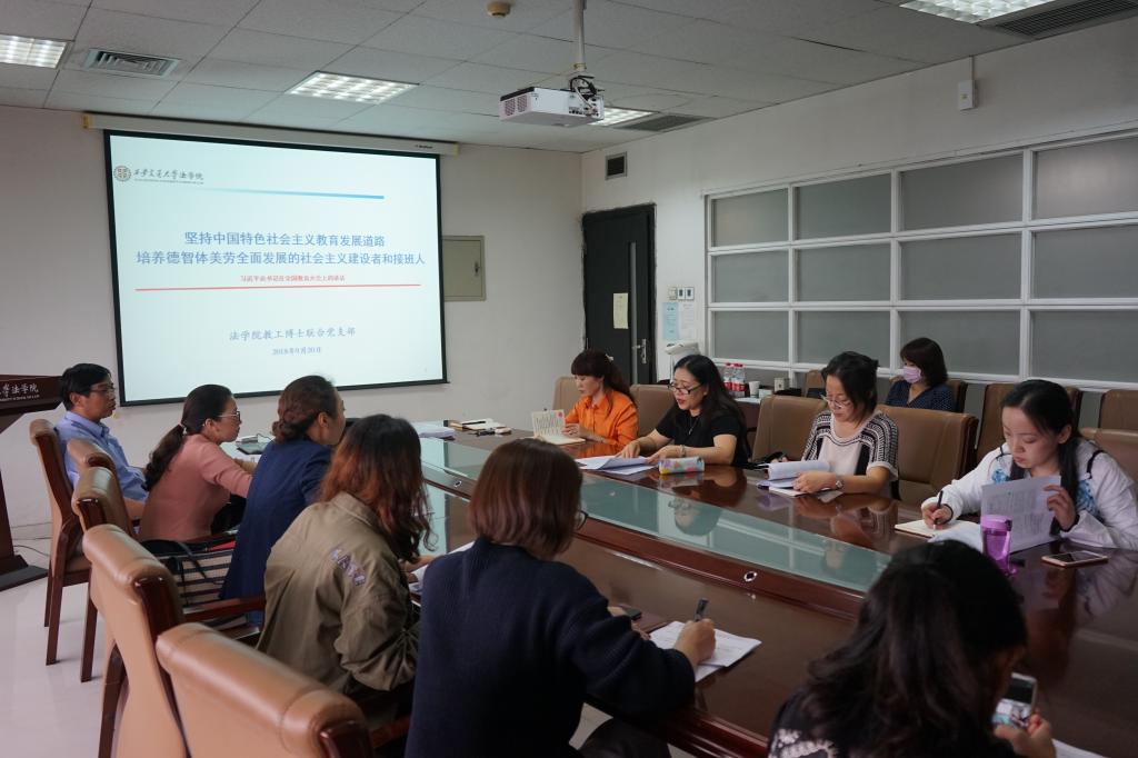 2018年9月20日下午,开云电子体育_开云(中国)教工博士联合党支部在主E910开展主题党日活动,围绕“牢记教育使命,明确党员纪律”的主题,支部党员认真学习了习近平总书记在全国教育大会上的讲话和新修订的《中国共产党纪律处分条例》以及《中共开云电子体育_开云(中国)委员会实践运用监督执纪“第一种形态”实施细则》。本次活动由支部书记吉兰湘主持。