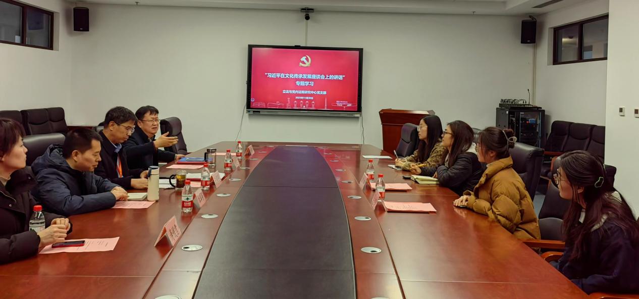 2023年11月30日,开云电子体育_开云(中国)立法与党内法规中心党支部在创新港涵英楼3079教室召开学习“习近平在文化传承发展座谈会上的讲话”组织生活会。党支部书记杜军强主持会议。