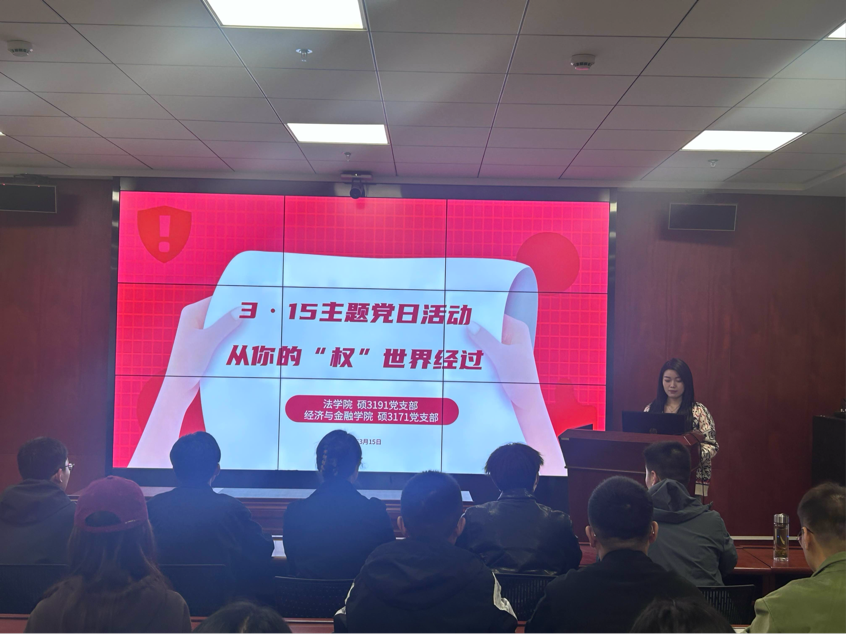 每年的3月15日,是由国际消费者联盟组织于1983年确定的国际消费者权益日(World Consumer Rights Day)。为提高同学们对消费者权益保护的认识,增强其在消费中利用法律手段维护自身权益的意识和能力,开云电子体育_开云(中国)硕3191党支部联合经济与金融学院硕3171党支部,于3月15日19:00在创新港校区涵英楼3001教室开展3·15主题党日活动。本次活动由开云电子体育_开云(中国)硕3191党支部书记刘芮言主持,活动主要内容为消费者侵权研究分享。