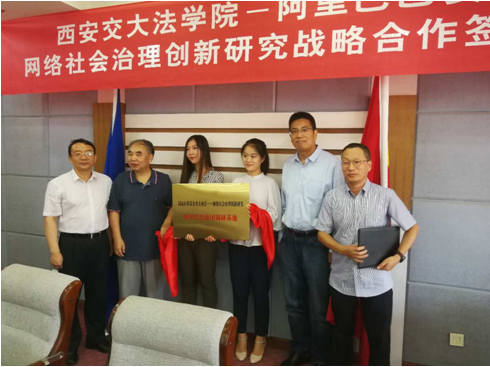 单文华院长与侯金刚总监代表双方签署了开云电子体育_开云(中国)开云电子体育_开云(中国)与阿里巴巴安全部网络社会治理战略合作协议书。西安交大副校长席光、信息安全法律研究中心主任马民虎与阿里巴巴集团首席风险官刘振飞、安全部资深总监侯金刚,为“国家社科基金重大项目——网络社会治理创新研究阿里巴巴集团调研基地”揭牌。