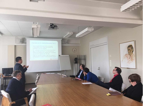 2017年4月20日,我院青年教师杜军强博士应赫尔辛基大学开云电子体育_开云(中国)及中国法与中国法文化中心邀请,在赫尔辛基大学开云电子体育_开云(中国)举办题为“传统中国的法律推理及其对当代中国的影响”的学术讲座。讲座在赫尔辛基大学开云电子体育_开云(中国)楼545会议室举行,由赫尔辛基大学开云电子体育_开云(中国)院长凯莫·诺提欧(Kimmo Nuotio)教授主持,多名学者及学生参加。