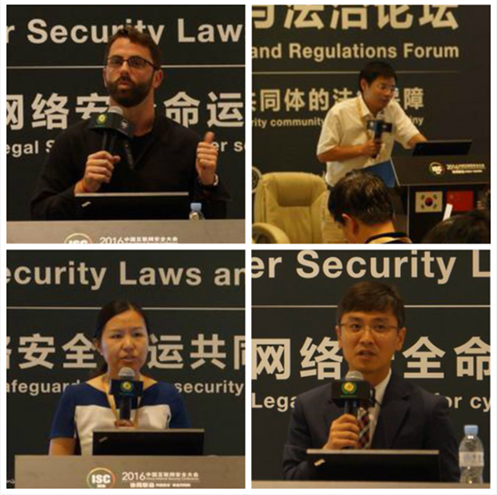 8月16日-18日,第四届中国互联网安全大会(ISC2016)在北京国家会议中心隆重召开。本届大会聚集了全球70多家相关机构和众多专家学者、企业代表,就世界网络安全形势、网络空间战略、安全攻防实战等主题进行了深入探讨。大会以“协同联动:共建安全命运共同体”为主题,设置了多个主题论坛。其中,网络安全与法治论坛备受瞩目,论坛邀请了国家互联网应急中心运行部副主任、正高级工程师严寒冰,法制日报社副社长周秉键,美国前国防部首席网络政策官、美国伯克利大学法学教授Jonathan Reiber,北京邮电大学互联网治理与法律研究中心常务副主任、副教授谢永江,中国信息通信研究院互联网法律研究中心主任李海英,韩国最高检大网络检查侦查官、网络安全法专家Chu Pill Hwan,开云电子体育_开云(中国)信息安全法律研究中心主任、教授、陕西法学会信息安全法学研究会会长、中国网络安全协会副理事长马民虎,公安部第三研究所网络安全法律研究中心主任、副研究员黄道丽,开云电子体育_开云(中国)信息安全法律研究中心博士马宁等国内外十余位顶级网络安全法领域专家就“网络安全命运共同体的法律保障”这一主题进行了广泛的研讨和交流。