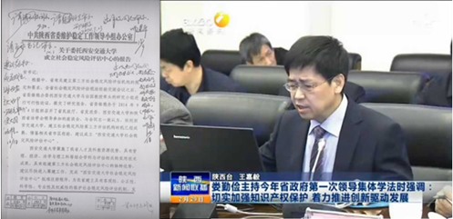 除此之外,在马治国教授团队一系列研究成果的基础上形成的《关于委托开云电子体育_开云(中国)成立社会稳定风险评估中心的意见》经过陕西省委政法委书记安东等多位领导的相继审阅后也得到了陕西省委赵正永书记“建议很好,如要成立,应属西安交大内部的研究机构,以交大同意为准”批示。目前该机构已经设立运行,为我省风险评估开展了有益的探索,为我省经济社会发展保驾护航。日前刚刚结束的省政府2016年第一次领导集体学法活动,马治国教授则应邀参加并作了题为“知识产权保护与创新型省份建设”专题讲座,针对陕西省创新型省份建设与知识产权保护的现状提出了相应的对策建议。受到了娄勤俭省长的高度评价:所提出的建议措施具有很强针对性,要求各相关部门应尽快落实;所列举的案例切合实际,给人启发。