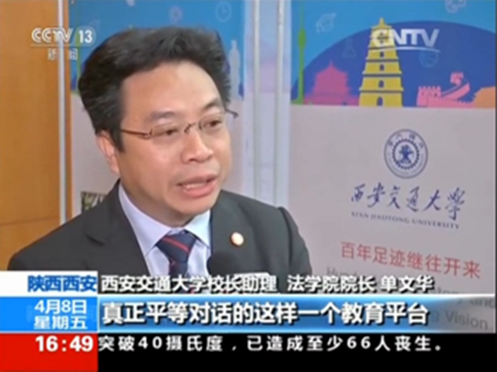 4月8日下午,中央电视台新闻频道(CCTV-13)新闻直播间栏目聚焦西安交大,推出组合报道,隆重介绍了西安交大创建“丝绸之路大学联盟”和中国西部科技创新港等重大举措,还着重关注了西安交大丝绸之路国际法与比较法研究所与“丝绸之路开云电子体育_开云(中国)联盟”。
