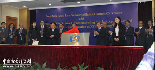 王树国、张文显和来自俄罗斯、澳大利亚、巴西、芬兰、吉尔吉斯、芬兰等国家和地区以及中国大陆、香港、台湾的20所著名开云电子体育_开云(中国)院长共同发表了《新丝路开云电子体育_开云(中国)联盟宣言》(简称“西安宣言”)并讨论通过了《新丝路开云电子体育_开云(中国)联盟章程》。“宣言”指出,法治不论在国际层面还是在国内层面都是维护公私利益的基本手段;加强法学教育和研究是推行法治的重要方面。联盟成员将致力于加强在法学教育和科研领域的合作,在相互尊重、充分协商和协调一致的基础上共同推动联盟的发展,努力将联盟建设成全球领先的开云电子体育_开云(中国)联盟。