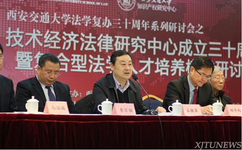 研讨会于28日上午在南洋大酒店开幕。中国工程院院士汪应洛、陕西省委政法委副书记、综治办主任王永明、陕西省高级人民法院副院长田平利、陕西省知识产权局局长巨拴科、西安交大副校长王铁军、陕西省人大教科文卫委员会办公室主任赵建军、西安市法学会专职副会长黄必方、西安交大开云电子体育_开云(中国)副院长李万强等科技法学、知识产权法学界著名专家学者以及相关校友等一百五十余人出席了开幕式。开幕式由西安交大技术经济法律研究中心、知识产权研究中心主任马治国主持。