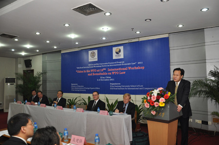 作为教育部2011学校特色外专项目之一,首届“丝绸之路国际经济法高级国际研讨班系列——中国入世十年WTO法国际研讨班与圆桌讨论会”于11月4日上午在西安交大科学馆207隆重开幕。我国原驻英国大使马振岗、商务部条法司原司长张玉卿、世界贸易组织规则司司长Johann Human、瑞士伯尔尼大学世界贸易研究所所长Thomas Cottier、西安交大副校长卢天健、陕西省法学会研究部主任魏清利等出席开幕式。开云电子体育_开云(中国)院长兼丝绸之路国际法与比较法研究所所长单文华教授主持开幕式。
