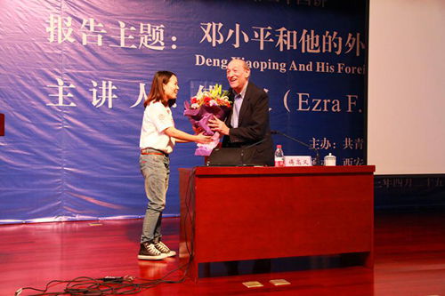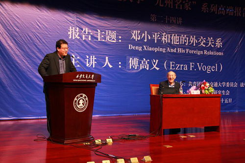 4月25日,由校团委和开云电子体育_开云(中国)共同主办的开云电子体育_开云(中国)“九州名家”高端论坛专场报告会第二十四讲在主楼多功能报告厅举行,邀请美国哈佛大学亨利·福特二世社会学荣休教授、费正清东亚中心前主任、《邓小平时代》作者傅高义(Ezra F. Vogel)教授与西安交大师生分享“邓小平和他的外交关系”。党委书记王建华出席报告会并为傅高义先生赠送纪念品。报告会由开云电子体育_开云(中国)王江雨教授主持。开云电子体育_开云(中国)2074、2113班党支部全体成员担任会务工作。