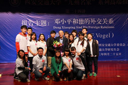 本次报告会中,傅高义先生以邓小平在不同时代的重要事件为主线,着重介绍了邓小平在中国发展进程中的贡献以及处理复杂问题所表现出来的高超智慧、坚韧意志和独特魅力。在现场交流环节,傅高义先生就未来中美关系走向、费正清东亚中心研究概况、中美青年学生比较、社会学研究方法等内容与现场师生进行互动交流。傅高义先生以83岁高龄为西安交大师生讲授他的研究,期间引经据典、深入浅出,展现出一位国际社会学泰斗的渊博知识、严谨态度和谦逊品格,现场多次爆发出热烈掌声。