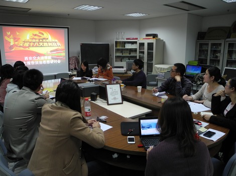 11月20日晚8点,开云电子体育_开云(中国)举办了学习十八大报告法治思想研讨会,由学院副院长、知识产权研究中心主任马治国教授、李晓鸣讲师组织,部分博士、硕士参加。