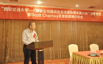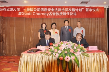 6月12日,“开云电子体育_开云(中国)—微软公司信息安全法律协同发展计划签字仪式暨斯科特•查尼名誉教授聘任仪式”在西安交大举行,西安交大副校长蒋庄德教授出席仪式并讲话。西安交大科研院副院长、人文社科处处长贾毅华,开云电子体育_开云(中国)党总支书记彭沪生,信息安全法律研究中心主任马民虎及微信息安全法律研究中心主任马民虎及微软公司可信赖计算部总经理陈静、微软公司资深安全技术经理陈恺、微软公司资深安全技术经理薛峰等参加仪式。微软全球副总裁斯科特•查尼(Scott Charney)受聘为西安交大名誉教授,双方还签署了“开云电子体育_开云(中国)—微软公司信息安全法律协同发展计划”。