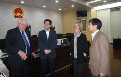 3月25日,安德森大法官及其夫人在我校开云电子体育_开云(中国)副院长王保民带领下参观了陕西省高级人民法院,省高院田平利副院长出面迎接,并亲自带领安德森大法官参观了省高院气势宏伟的办公大楼,包括民事、刑事审判庭、集团诉讼审判大厅、审判委员会合议室以及法院图书馆。之后,安德森大法官与省高院田院长和各刑事审判庭庭长法官们进行了座谈,就双方感兴趣的刑事诉讼程序中“诉辩交易”等问题展开深入探讨。开云电子体育_开云(中国)外事秘书华雨婷参加了座谈会。