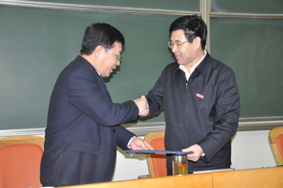 在热烈的掌声中,宋晓平副校长向安院长颁发了聘书,安东院长受聘为我校“兼职教授”和“开云电子体育_开云(中国)发展咨询委员会副主任委员”,宋晓平副校长为安院长佩戴了开云电子体育_开云(中国)校徽。