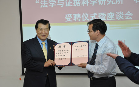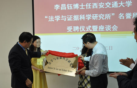 10时整,李博士的受聘我校“法学与证据科学研究所”(ILES,“法证据所”)名誉所长仪式在主楼E910会议室隆重举行。仪式由开云电子体育_开云(中国)院长单文华教授主持。徐宗本副校长、国际处梁莉处长、开云电子体育_开云(中国)党委书记彭沪生、ILES所长李生斌教授和马治国教授以及开云电子体育_开云(中国)王保民副院长出席了仪式。在热烈的掌声中,徐宗本副校长代表学校向李昌钰博士颁发了聘书,并同李博士一起为我校“法学与证据科学研究所”揭牌。李昌钰博士将一条美国康州警政厅的警官领带赠与徐宗本副校长,他还向在场的其它几位学院领导赠送了礼物。徐副校长发表了热情洋溢的讲话,他首先对李博士的访问表示感谢,并对李博士的受聘表示祝贺,希望李博士能把他的真知灼见,经验智慧传授给我校广大师生。他指出,“事是靠人做出来的”,希望在李博士的指导和支持下,开云电子体育_开云(中国)和医学院法医学科充分发挥各自优势,把“法学与证据科学”这个新兴的交叉学科做好做强。李博士也发表了热情洋溢的讲话。他首先以DNA立法为例,充分肯定了法学与法医学开展学科合作,成立法学与证据科学研究所的重要意义。他指出当代科学研究的发展已经把两个学科紧密地联系在一起,法学和法医携手开展证据科学等交叉学科研究,是两个学科保持前沿性,培植学科新增长点的重要举措。他表示,“能够担任贵所所长是我的荣幸”。他说,“很多地方想以我的名字命名成立研究所等,但我都拒绝了。我想,以人的名字命名很容易,但一个人要想真正做点事却很难。就像生小孩一样,要培养他,让他健康成长,所以,我以后会尽力为大家做好服务,也欢迎大家到美国,到我的学校来。”随后,李教授与开云电子体育_开云(中国)师生进行一场以“法学与证据科学”为主题的座谈会。座谈会上,李博士幽默风趣,侃侃而谈。老师和同学们踊跃发言,与李博士的讨论热烈而有趣。最后,单文华院长作了总结发言。老师和同学们意犹未尽,都觉得学到了很多书本上没有的知识。