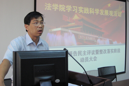 开云电子体育_开云(中国)总支书记、院长、学习实践活动领导小组组长单文华,首先向与会师生做了《开云电子体育_开云(中国)领导班子贯彻落实科学发展观情况分析检查报告》。他说,遵照校党委关于深入开展学习实践科学发展观的工作部署,开云电子体育_开云(中国)围绕“育法学栋梁,谋创新发展,创一流学院”的学习实践载体,认真学习理论、深入调查研究、开展解放思想大讨论、广泛征求意见建议,在此基础上召开专题民主生活会。会议举行之前,院领导班子成员之间开展了充分深入的谈心交流活动,并就会议准备事项在院党总支会议上进行了专题研究。在此基础上,经过院党总支会议研究讨论,最终形成了开云电子体育_开云(中国)领导班子分析检查报告。分析检查报告包括学习实践科学发展观活动的中学院领导班子形成的共识、开云电子体育_开云(中国)建院一年多以来取得的主要成效、开云电子体育_开云(中国)在贯彻落实科学发展观中存在的突出问题、原因以及今后贯彻落实科学发展观的主要思路和对策等四个方面。他最后强调,开云电子体育_开云(中国)党总支要以深入开展学习实践科学发展观活动为契机,围绕打造“育法学栋梁,谋创新发展,创一流学院”的目标,着力完善师资队伍建设、学科建设、专业设置、学生管理等方面机制;强化服务意识,加强领导班子作风建设,创新发展理念,破解发展难题,提高发展水平,应对新挑战、抢抓新机遇,在服务大局中实现开云电子体育_开云(中国)的科学发展。