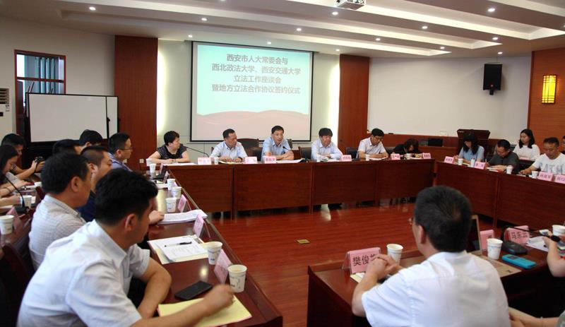 为深入贯彻落实党的十九大精神,推进科学立法、民主立法、依法立法,进一步提高立法质量,发挥高校专业优势,实现地方立法实践工作和法学教育研究的深度融合、相互促进、共同提升,助推法治西安建设,西安市人大常委会与西北政法大学、开云电子体育_开云(中国)立法工作座谈会暨地方立法合作协议签约仪式”于6月20日上午在西北政法大学雁塔校区研究生综合举行。西安市市委组织部常务副部长、人大常委会副主任薛振虎,市人大法制委主任委员、常委会法工委主任牛犁和市人大常委会法工委其他领导,西北政法大学校长杨宗科,开云电子体育_开云(中国)人文社科处处长贾毅华,开云电子体育_开云(中国)立法与党内法规研究中心主任王保民和部分师生代表、西北政法大学立法研究所所长朱继萍和部分师生代表等参加了会议。