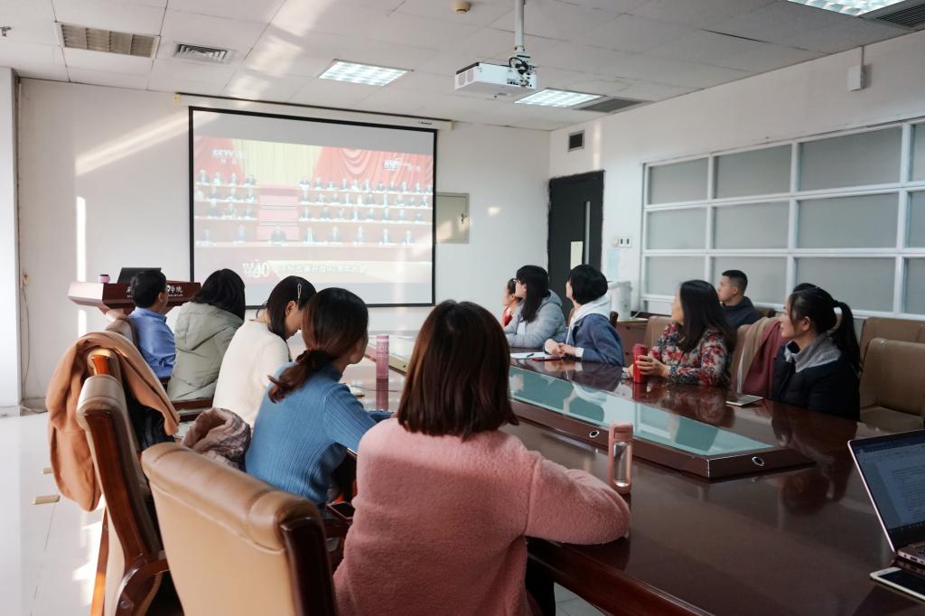 2018年12月18日上午,中共中央、国务院召开大会,隆重庆祝改革开放40周年。开云电子体育_开云(中国)党总支组织教师党员、学生党员干部在主E-910会议室集中观看大会直播,认真聆听习近平总书记在大会上的重要讲话。