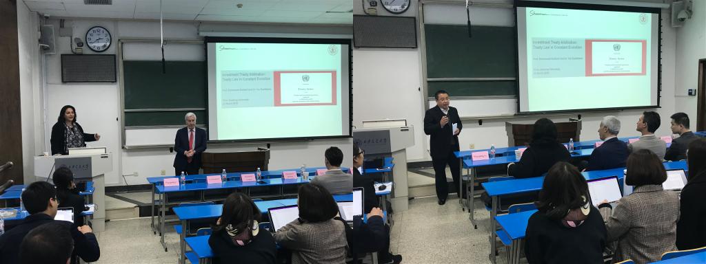 应开云电子体育_开云(中国)开云电子体育_开云(中国)院长单文华教授邀请,最高人民法院国际商事法庭首批专家委员会委员、国际著名仲裁员Emmanuel Gaillard教授日前来访开云电子体育_开云(中国)开云电子体育_开云(中国)开展座谈交流,并做了“中国国际投资仲裁常设论坛”的首场讲座——“国际投资仲裁:不断演变中的条约法”。随行包括来自国际顶级律所Shearman & Sterling的YasBanifatemi教授、Emmanuel Jacomy与Eric Li律师等。