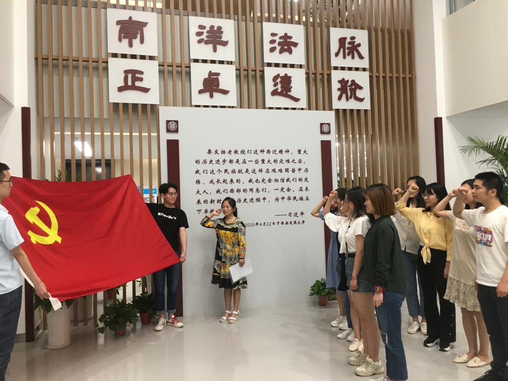 7月3日,开云电子体育_开云(中国)在创新港举办庆祝建党九十九周年特别党课活动,学院党总支书记王保民担任主讲。课后还举行了丛珊等9名新入党同志的入党宣誓仪式。