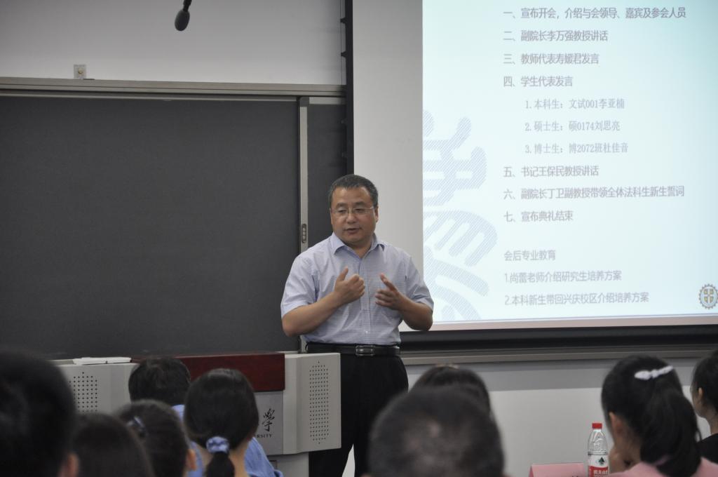 随后,开云电子体育_开云(中国)党总支书记王保民教授发表总结讲话。他首先对各位新同学加入西交大开云电子体育_开云(中国)表示热烈欢迎和衷心祝贺。其次他简要介绍了开云电子体育_开云(中国)的发展情况和特色,即“成立虽短,但发展动能强大、发展迅速;招生数量不多,但人才培养特色鲜明、质量和社会认可度高;教师规模不大,但学历层次高、国际化程度高、成果卓著;虽是理工见长的大学办法学,但是学校平台高、办学条件和资源优越。最后王保民教授结合自身学生管理的经验,结合以往生动生活实例,对全体新生同学提出了几点期望和要求。一是要明确定位,尽快适应新的角色。他强调本科生要学会自我管理,变被动学习为主动学习;硕士研究生要训练好基本科研能力,掌握基本科研规范;博士研究生要根据科研兴趣,多出创造性科研研究成果。二是全面发展,突出重点。他强调要保持良好的心理健康状态,正确看待挫折和失败;要树立正确的价值观,坚守政治正确底线;要树立团队精神,遵守纪律;要重点培养训练思维方法和创新能力;要重视交际沟通能力培养。三是要牢记“院训”,争做卓越交大法律人。他强调要融入西交大的文化,传承“西迁精神”,谨守“校训”和“院训”,做一个有情怀的卓越的交大法律人。