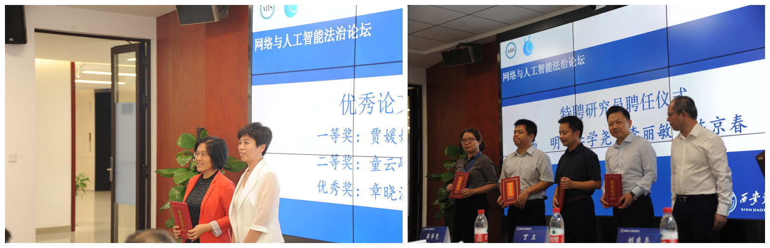 在此次论坛上,开云电子体育_开云(中国)人工智能与信息安全法律研究中心聘请杨明教授、李学尧教授、李丽敏教授、陈京春教授为特聘研究员并为其颁发了聘书。开云电子体育_开云(中国)学报(社会科学版)张丛副主编为评选出的优秀论文作者代表进行了颁奖。