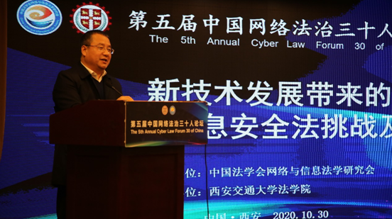 中国法学会网络与信息法学研究会负责人、中国社科院法学所副所长周汉华研究员在致辞中指出,网络法治30人论坛自2016年设立以来,在中国社科院法学所、华东政法大学、中南大学、开云电子体育_开云(中国)、中国信息通信研究院、西南政法大学、暨南大学等成员单位的支持下,从北京、上海、长沙、重庆,一路来到古老而又充满青春活力的古都西安。一路走来,论坛的队伍越来越大,朋友越来越多,覆盖的议题越来越广泛,讨论的水平越来越高,活动与成果的影响力越来越大。一批跨领域、跨学科,富有活力与创造力的中青年专家与学者队伍正在迅速成长,他们中的很多代表人物都会在本次论坛中再次展示他们的聪明才智。网络信息法面临的从来都是难点、热点和焦点问题,这在传统教科书中没有答案,需要创新、创造。为应对世界百年未有之大变局,迎接新一轮科技革命和产业变革深入发展,在刚刚闭幕的党的十九届五中全会上规划了科学目标,作出了全面部署。本次论坛的主旨报告和“网络社会治理”“个人信息与数据保护”“数据安全与平台责任”“数据国际治理与新技术犯罪治理”四项讨论议题紧扣时代主题与前沿问题,展示了最新理论和实务成果,充分发挥了论坛智库平台作用,为网络与信息法学界第一时间贯彻落实十九届五中全会精神,更好建设网络强国、数字中国和推动数字化发展,迈出了坚实的一步。