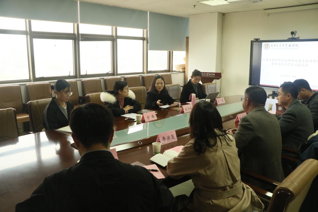 随后,双方针对法学毕业生就业工作普遍存在的重难点问题进行了交流。刘蔓琦书记介绍了云南大学开云电子体育_开云(中国)学生就业工作的困难点,他指出生源特点、家庭经济情况、用人单位隐形性别歧视、学生就业观念传统等情况制约了就业工作的开展,导致学生就业率偏低。他对交大开云电子体育_开云(中国)的就业工作表示赞扬,指出我院就业工作呈现系统化、提前化、精细化等特点,许多就业帮扶举措值得学习。张乃钟指出,我院非常重视学生就业工作,工作中形成了本科生和研究生就业工作“一体化”管理服务机制,在学院领导下以学生工作专职委员为主干,教学副院长、兼职辅导员、研究生导师和科研团队以及本科生班主任、学业导师为补充的就业工作队伍。在就业信息发布、就业经验交流、就业指导帮扶、实习平台搭建、校友资源等方面合理配置,精准发力,努力确保每一名毕业生顺利就业。特别是2020年开云电子体育_开云(中国)研究生毕业生在基层选调生,世界五百强企业就业等重要指标超额完成学校目标任务,取得建院13年以来历史最好成绩。学院就业助理丛珊也从毕业生角度对我校选调生考试温馨培训以及学院“管家式”的就业精准指导和帮扶等方面分享了自己的心得和感受。