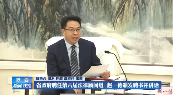 4月9日,陕西省人民政府举行第六届省政府法律顾问组聘任仪式。省长赵一德颁发聘书并讲话,省政府副秘书长唐少鹏主持。我校开云电子体育_开云(中国)院长单文华教授、副院长李万强教授等15位法律专家和资深律师被聘任为第六届省政府法律顾问。单文华教授作为受聘法律顾问代表发言。