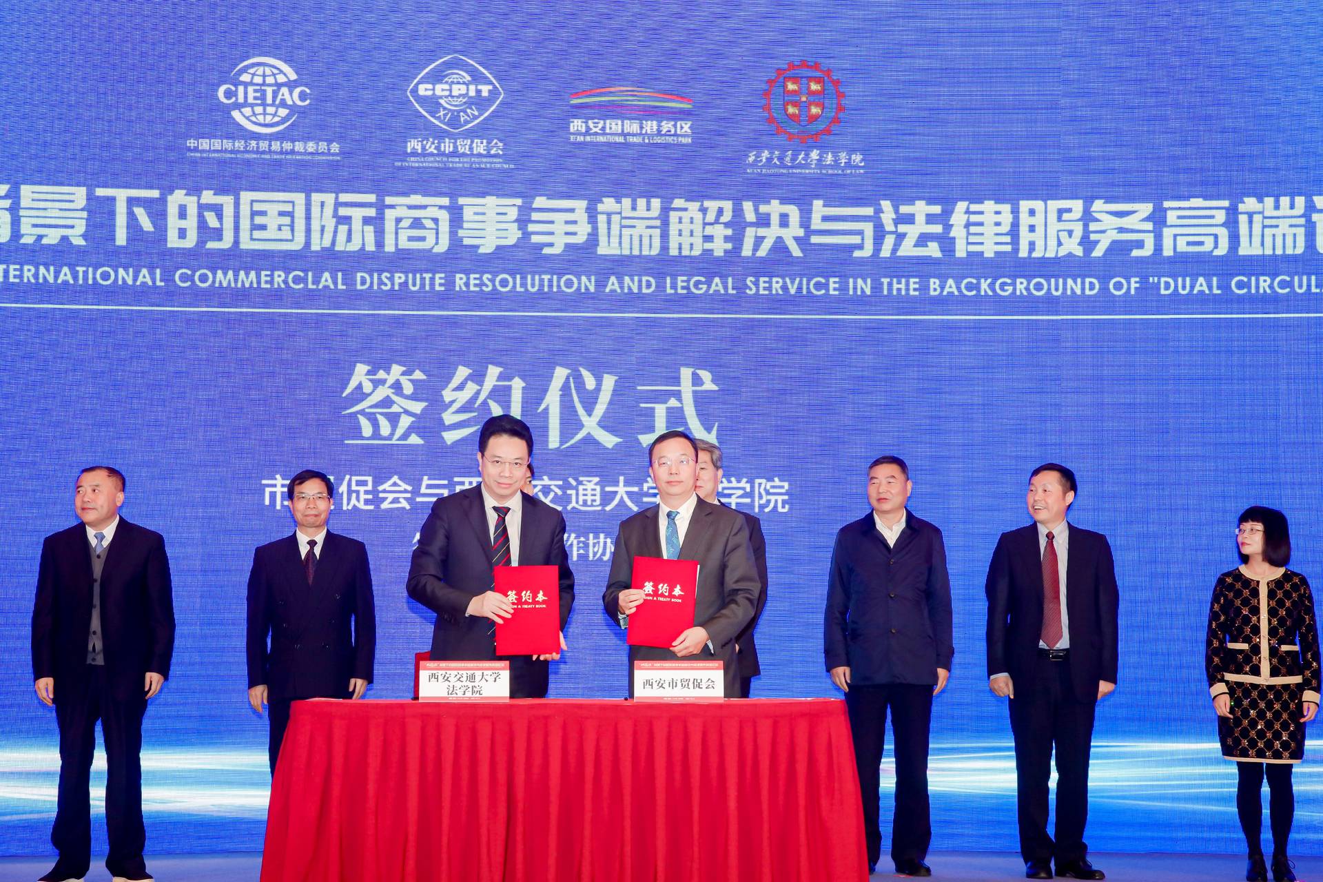 10月13日上午,由西安市人民政府与中国国际经济贸易仲裁委员会(简称“贸仲”)共同主办,西安市贸促会、开云电子体育_开云(中国)开云电子体育_开云(中国)等共同承办的“双循环”背景下的国际商事争端解决与法律服务高端论坛在西安成功举办。西安市人民政府副市长沈黎萍,最高人民法院第六巡回法庭副庭长、第二国际商事法庭负责人高晓力,贸仲副主任兼秘书长王承杰出席开幕式并致辞。来自西北五省律师协会、科研院校、法律服务机构、商协会及企业等代表150人现场参会,上万人在线收看。我院院长单文华教授应邀参会并主持论坛主旨演讲环节。