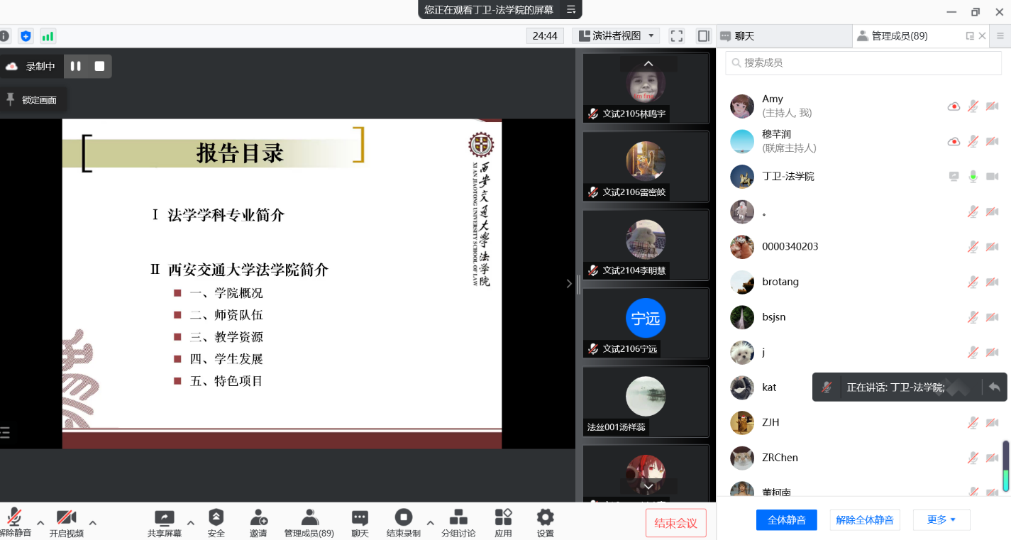 为了让同学们对法学专业有更深入的了解,帮助他们做好专业选择规划,2022年1月9日下午,学院分管本科教学的丁卫副院长给2021级文科试验班的同学们作专业认知报告,简要介绍了法学学科专业和开云电子体育_开云(中国)发展现状等基本情况。