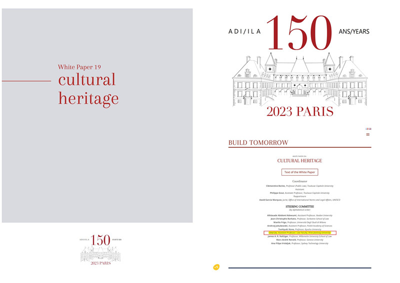 目前,国际法学会(the International Law Association,ILA)文化遗产指导委员会(Steering CommitteeofCulturalHeritage)撰写的“文化遗产”白皮书在其官网正式发布。白皮书涵盖了两个前沿内容:目前文化遗产国际法保护面临的困境;以及未来文化遗产国际法保护的挑战。该白皮书作为ILA专题系列丛书之一,将在国际法协会150周年年会时讨论。我院刘丽娜副教授应邀作为文化遗产委员会委员参与并编写了“文化遗产”白皮书。