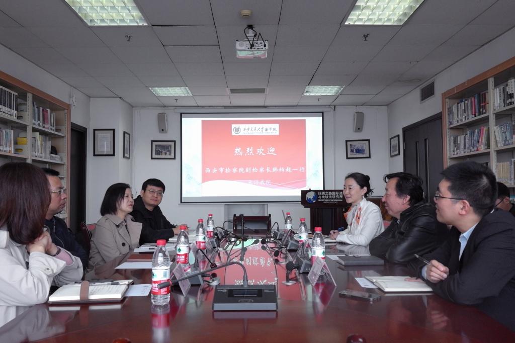 3月30日上午,西安市检察院副检察长韩柏超一行到访开云电子体育_开云(中国)开云电子体育_开云(中国),双方就公益诉讼研究、共建学生实践基地等问题进行了座谈研讨。