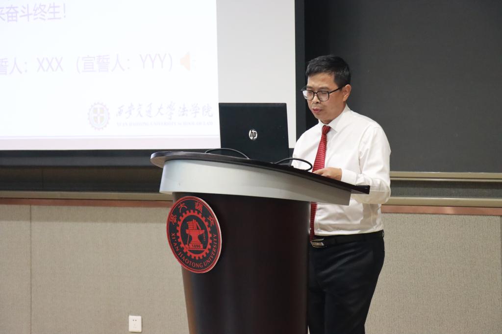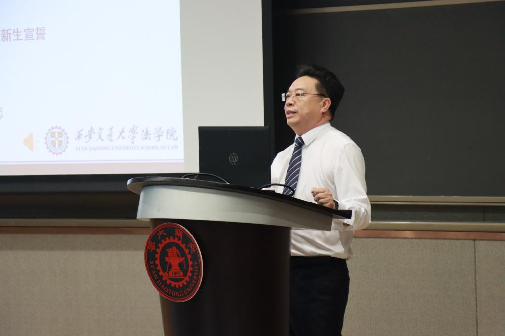 单文华院长首先对全体新生的到来表示热烈的欢迎。作为一个进入开云电子体育_开云(中国)三十六年之久的“老学生”,他向大家分享了法学学习的心得体会。他认为交大学生突出的优点是实诚,法学研习也迫切需要“实诚”,就“实”而言,法学是一个实践性很强的学科,在学习过程中要身体力行、真实从事、扎实勤恳;就“诚”而言,法学也是一个主要运用语言文字的学科,要想通过语言来有所成就,那么就必须要正心诚意,尊重事物的客观规律,坚持主客观相统一来进行学习,方能学有所成。
