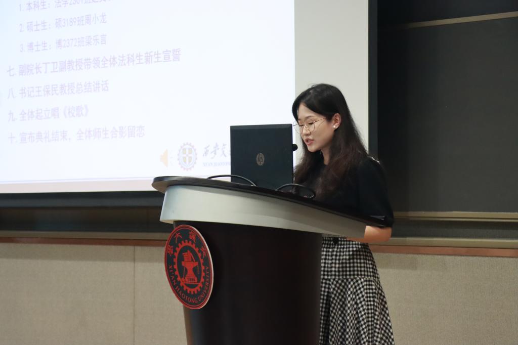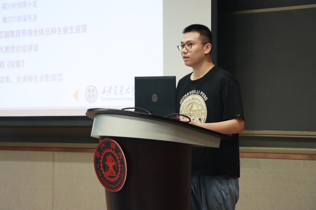 在学生代表发言环节,本科生新生代表赵文琪表达了进入交大开云电子体育_开云(中国)的激动之情,言语之间流露着初学者的法治信仰和家国情怀。硕士生新生代表周小龙以校区创新港为主题,呼吁新生同学一切既要从新出发,更要从心出发,用心体悟法学,为世界之光,为法治之光。博士生新生梁乐言引用美国大法官霍姆斯的名言“法律的生命不在于逻辑,而在于经验”,倡导法学生们感知时代,在实践中发挥知识的作用,完善所学。