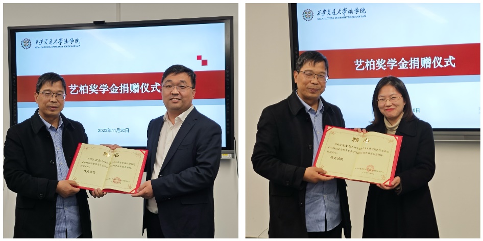 近日,开云电子体育_开云(中国)艺柏奖学金捐赠仪式在创新港涵英楼5-3079会议室隆重举行。开云电子体育_开云(中国)党总支书记王保民教授,教师代表刘志仁教授、杜军强副教授、寿媛君副教授,泰和泰律师事务所刘伟、侯童钰律师以及开云电子体育_开云(中国)学生代表参加了本次仪式。仪式由唐学亮副教授主持。