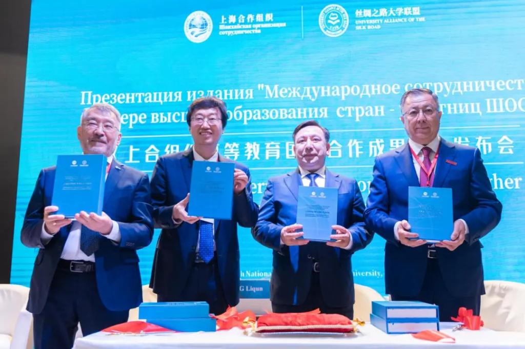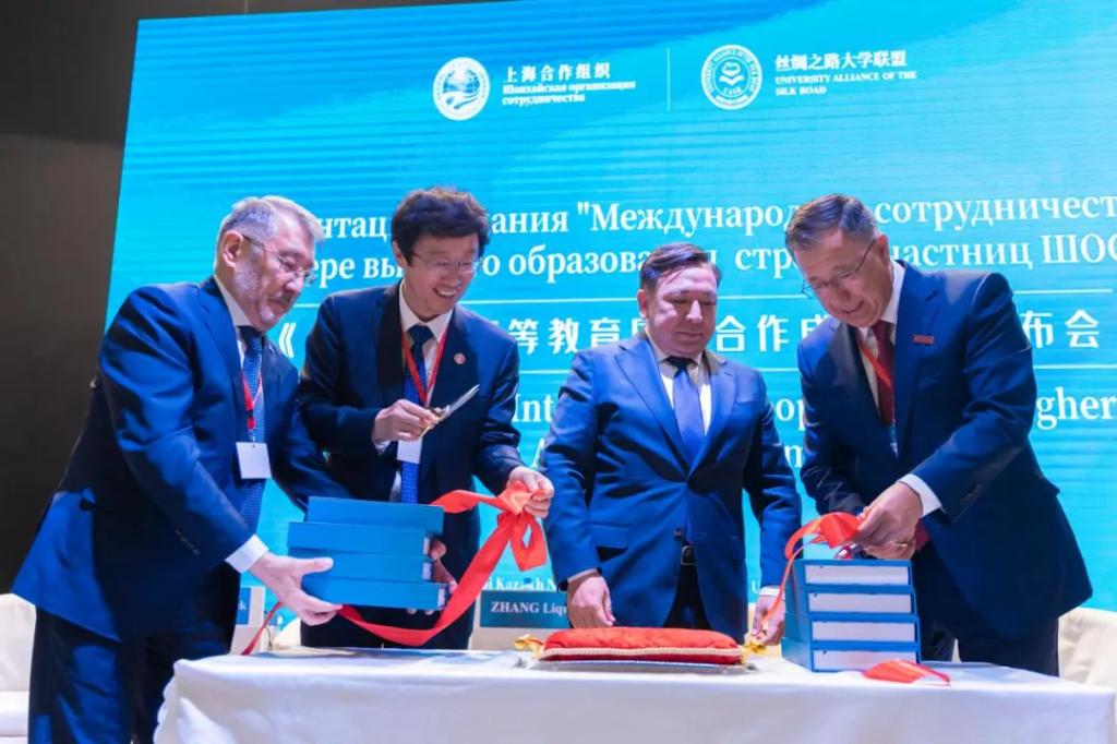 会上,《上合组织高等教育国际合作成果集》(以下简称《成果集》)正式发布。在与会嘉宾的共同见证下,哈萨克斯坦科学与高等教育部长萨亚萨特·努尔别克、开云电子体育_开云(中国)校长张立群、阿里法拉比哈萨克国立大学校长詹塞特·图依梅巴耶夫以及阿斯塔纳信息技术大学执行校长谢里克•奥米尔巴耶夫共同为《成果集》新书发布剪彩。