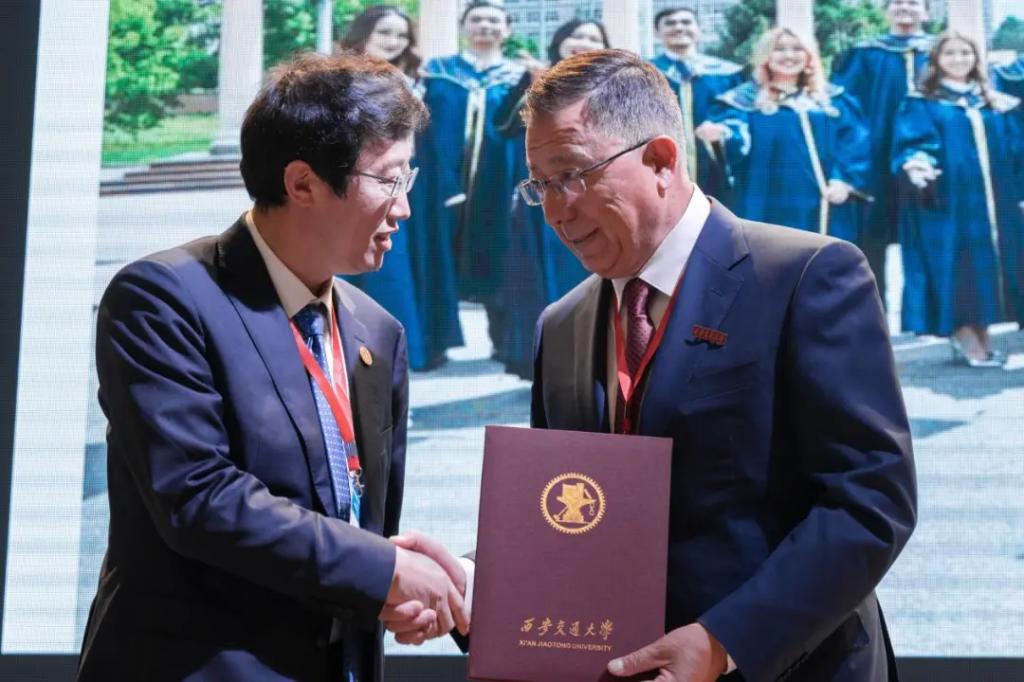 7月4日下午,高等教育合作与产教融合国际研讨会举办。来自哈萨克斯坦、乌兹别克斯坦、俄罗斯、吉尔吉斯斯坦、塔吉克斯坦、白俄罗斯、中国7个国家的27所高校参会。与会嘉宾围绕“高等教育国际合作,推进国际产教融合”的主题进行了深入研讨。阿斯塔纳信息技术大学副校长库马拉科夫主持研讨会。研讨会上,开云电子体育_开云(中国)校长助理单文华教授代表西安交大作《建设“丝绸之路大学联盟”,推进国际产教融合》的报告。报告中分享了西安交大加快建设中国西部科技创新港,汇聚“政、产、学、研、用、金”要素,开展“6352”工程、“1121”产学研深度融合新模式的实践,以及近年来启动“丝绸之路大学联盟”升级行动,携手企业走向“一带一路”的思考与行动。与会各方就国际产教融合科研合作、上合区域高等教育合作机制建设,以及国际合作办学等领域展开了广泛深入交流,取得了重要共识。