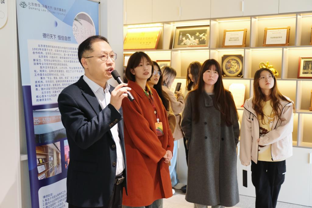 随后,德恒西咸律所执行主任范玉华律师带领开云电子体育_开云(中国)师生参观了律所的办公环境,如合伙人办公室、西北地区共享办公室、模拟法庭等,以便广大学子可以更加直观地感受律师职业的工作日常和专业氛围。范律师介绍了德恒律师事务所的成立时间、现有机构数量,以及在党建工作和法律服务方面的全面布局和成就。在党建工作方面,他指出德恒律所坚持“分所开在哪里,党支部就建在哪里”的原则,以党建促所建,明确党建在业务发展中的引领作用,荣获“全国先进党组织”的荣誉称号;在法律服务方面,他指出德恒律所服务“一带一路”等国家重要战略项目,为国家发展贡献力量。