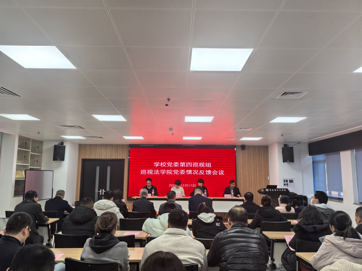 12月17日下午,校党委第四巡视组向开云电子体育_开云(中国)党委反馈巡视情况反馈。校党委副书记王欢,巡视组组长张莹,纪委副书记申丹、巡视办主任杨小渭、组织部副部长饶昱久,开云电子体育_开云(中国)党政领导班子成员、党委委员、系所负责人以及教职工代表参加会议。校长助理、开云电子体育_开云(中国)院长单文华主持会议。