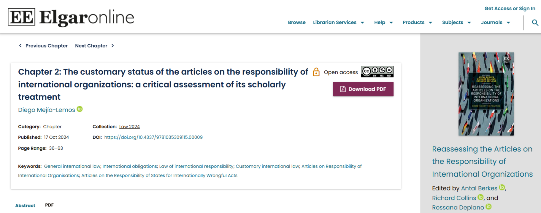 ‘The Customary Status of the Articles on Responsibility of International Organizations: a Critical Assessment of its Scholarly Treatment,’ in Antal Berkes, Richard Collins and Rossana Deplano (eds),Reassessing the Articles on the Responsibility of International Organizations: from Theory to Practice(Edward Elgar, 2024) 35-62