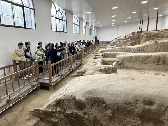 随后,讲解员又带领师生们前往耀州窑遗址和唐三彩窑址。在耀州窑遗址,讲解员向师生们详细介绍了耀州窑烧制的流程,历史实物与现场讲解的结合让师生们的体验更为真切。而唐三彩窑址,则是生动再现了唐代烧制三彩的历史场景和生产序列,古代耀州窑高超的工艺技术和有序的分工安排一览无余。随后刘丽娜副教授引导学生从“可移动文物”与“非物质文化遗产”双重法律视角展开讨论。一方面,出土瓷器属于文物范畴,受《文物保护法》严格规范。另一方面,传统制瓷工艺作为非物质文化遗产,其传承与发展涉及《非物质文化遗产法》的保护与振兴机制。