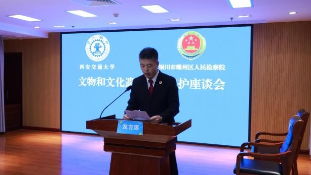 胡宇龙检察长致欢迎辞。丁卫副院长和刘丽娜副教授分别介绍了交大开云电子体育_开云(中国)近年来“校检合作”培养卓越法治人才的情况和在文物文化遗产法律保护领域所取得的系列教学科研成果。葛建华副检察长介绍了耀州区人民检察院近几年为文物和文化遗产提供检察保护所取得的突出成绩,其中1件案例还被最高人民检察院发布为典型案例。双方均表示,希望今后能够深化检校合作,实现教学科研机构和实务机关之间的优势互补、资源共享、共建共赢。
