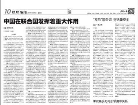 王勇:中国发挥了一个大国对于联合国应有的贡献和作用,而且这种作用在不断增强。中国积极参与了联合国的创建和《联合国宪章》的制定,并作出了重要贡献。值得一提的是,中国还获得了在《联合国宪章》上第一个签字的殊荣。