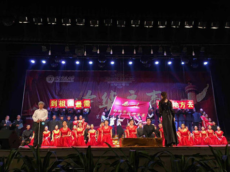 “向前进!向前进!西迁气势不可阻挡!向前进!向前进!朝着西迁的方向!”随着全体合唱队员的齐声演唱,整个合唱队伍变换成“XQ(西迁首字母)”和“60”的造型,一面写有“西迁!想科学技术进军!”旗帜迎风飘扬,将现场氛围带至顶点,瞬间点燃了全场观众的激情。大树西迁,饮水思源,在“到祖国最需要的地方去!”的誓言中展现了新一辈开云电子体育_开云(中国)与化工学院青年学子的拳拳报国情。